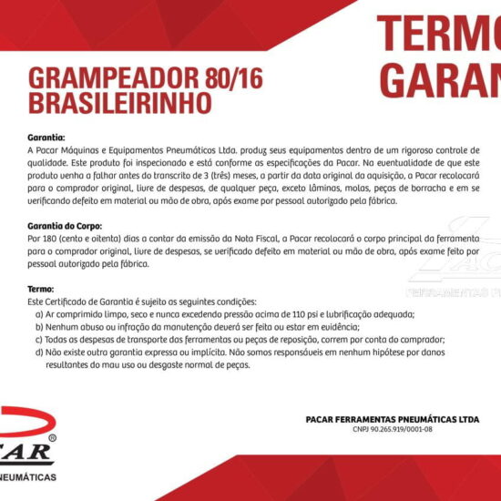 O Grampeador Pacar Brasileirinho é um tipo de grampeador pneumático que funciona a partir de ar comprimido, eles são projetados para uso em maior escala, como no segmento industrial ou em tapeçarias por exemplo.