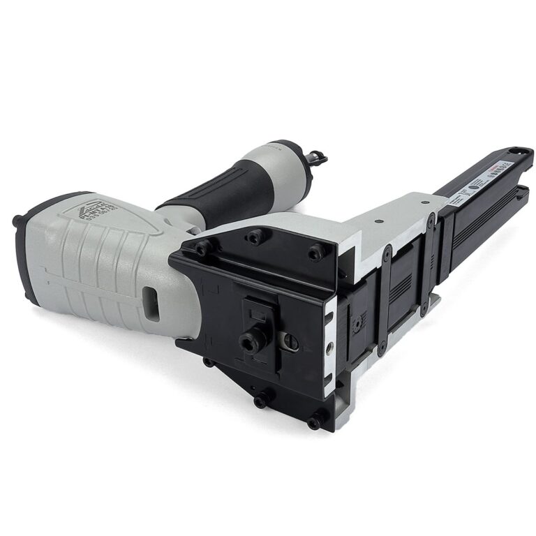 Esse Grampeador utiliza grampos Box-35 de 15 a 18mm comporta até 100 grampos de uma vez, com sua altíssima taxa de disparo e é capaz de utilizar todos esses grampos tão rápido quanto seu utilizador precisar. Ele é bastante leve devido ao corpo de alumínio e permite o uso por longas horas.