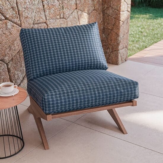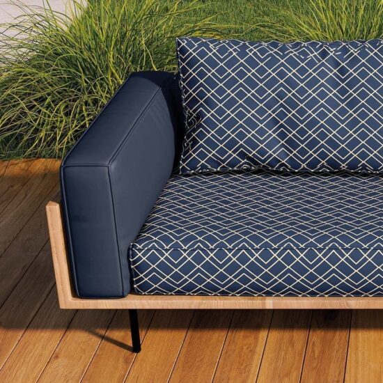 É um tecido impermeável para sofás feito com corpo e barra em Jacquard, acabamento Cotton, pré-encolhida e Antipilling. Protege contra a ação do sol, repele a água e traz mais cor e vida para os estofados de ambientes internos ou externos.