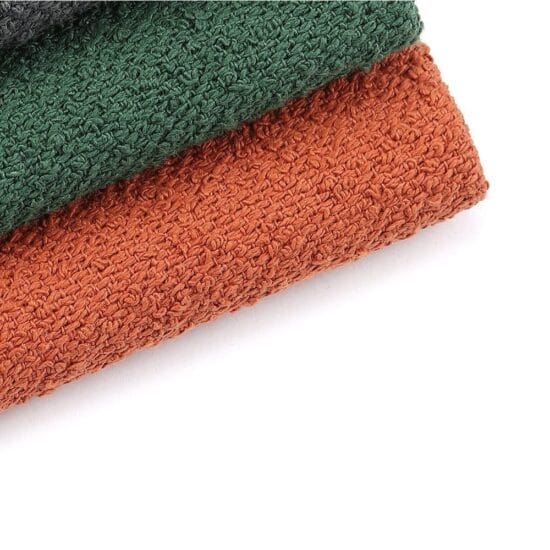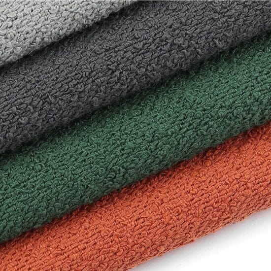 É um Tecido Bouclé Impermeável para Sofás feito com fibras de algodão macio de alta qualidade. Dentre os tecidos que oferecemos é até o momento o mais bonito e sofisticado. Possui cores das tendências 2022/23 para decoração interna escolhida especialmente para combinar com seu projeto de arquitetura contemporânea.